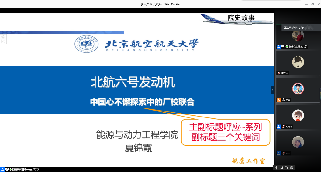 自2019年5月启动院史工作以来,以老中青三代动力人共同讲述“中国心”的故事为主题,以开展“不忘初心、牢记使命”主题教育为契机,传承北航红色基因,进一步落实立德树人根本任务,着力于培养德智体美劳全面发展的社会主义建设者和接班人。
