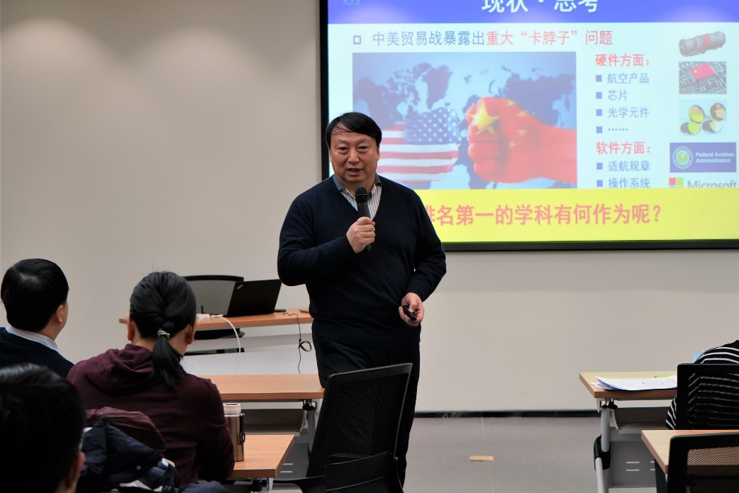 2020年度重点工作》的主题报告。丁院长首先针对国内外高校航空航天学科做了全面对比分析,并指出一流学科应该做出引领空天科技前沿、支撑国家重大战略需求、培养一流人才的一流贡献。回顾2019年,学院为落实立德树人根本任务和服务一流人才培养,在师资队伍建设、课程体系建设、教材建设、实践教学体系建设、硕博研究生培养质量、学生思政工作等方面投入了大量的精力,同时也取得了骄人的成绩。2019年,学院参与的“超循环气动热力前沿科学中心”获得教育部批准,以优异成绩通过“双一流”学科群中期评估,通过了“111”创新引智基地评估,贯彻落实学校两校区规划部署并基本完成沙河搬迁工作。深入扎实开展“不忘初心、牢记使命”主题教育,学院分党委获批教育部“全国党建工作标杆院系”。展望2020年,学院将继续坚守立德树人使命,强化科研特色优势,积极推进沙河建设,完善和航空发动机研究院的协同机制建设,不忘初心,培养一流的航空动力优秀人才。
