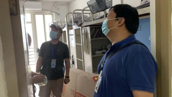 分党委积极响应号召,6个教师党支部的党员同志、教师志愿者和辅导员爱心、耐心、细心地以视频直播的方式与学生沟通,用一天的时间高效完成了2020届本科毕业生行李打包工作。期间,学校党委副书记程波、学生工作部部长董卓宁、研究生工作部部长宋晓东等领导到公寓楼内慰问。