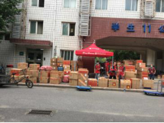 7月5日9时,71名教师和辅导员在校内5号楼前集合,领取打包物资袋,并进入宿舍开始一天的打包工作。