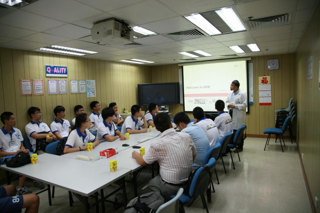 7月25日,交流团前往香港ASM公司参观。香港ASM公司是全球最大的半导体和发光二极管行业的集成、封装设备供应商。ASM公司能一直处于半导体和发光二极管行业的领头羊根本的秘诀在于公司对于科技研究的重视。ASM公司近90%的雇员是研究人员,并且在公司发展的过程中,始终专注于本领域的研究,不把精力分散到其他领域,注重“精”而非“广”,始终坚持一科技发展为第一要素。在ASM参观过程中,现代化、高精度机械操作让交流团每个成员都获益匪浅。