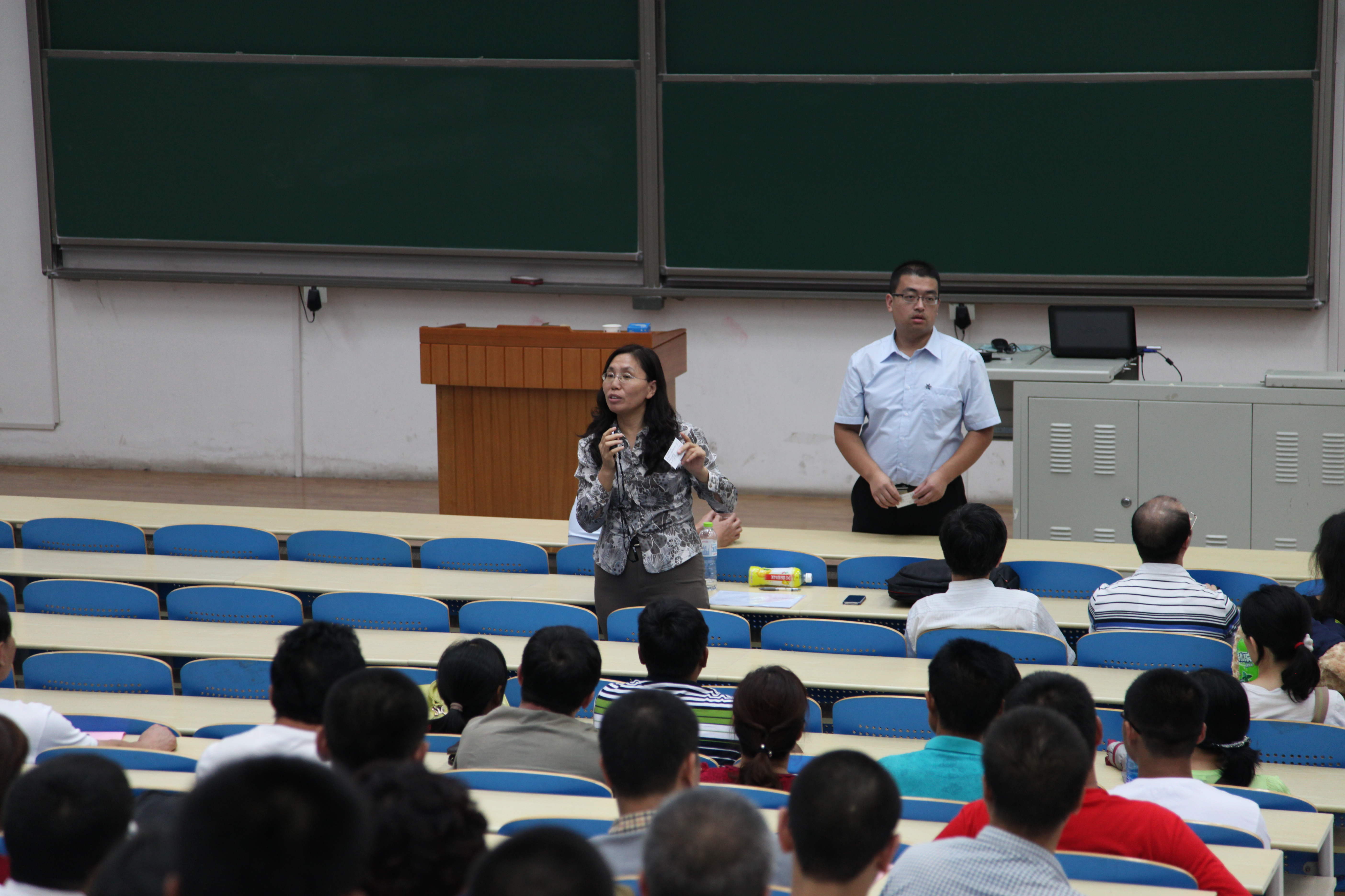 在沙河校区J0-003分两次召开了2014级新生家长会。学院党委书记王强教授、学院副院长申秀丽教授、党委副书记李建伟老师、各班班主任老师以及全体辅导员参加了此次家长会。家长会由专职辅导员曾煜主持。