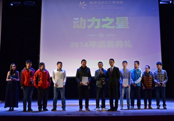 中航工业燃气涡轮研究院人力资源部陈晓春主管和北京全四维动力公司徐克鹏总工程师分别为624所奖学金、四维动力奖学金的获得者颁奖,并表示企业将不断支持推动学校科技创新的发展,与学校一同实习强国动力梦。最后,全院师生共同回顾了学院本科生2013-2014年取得的各类荣誉,典礼在由获奖学生代表深情合唱的歌曲《You Raise Me Up》中圆满落下帷幕。