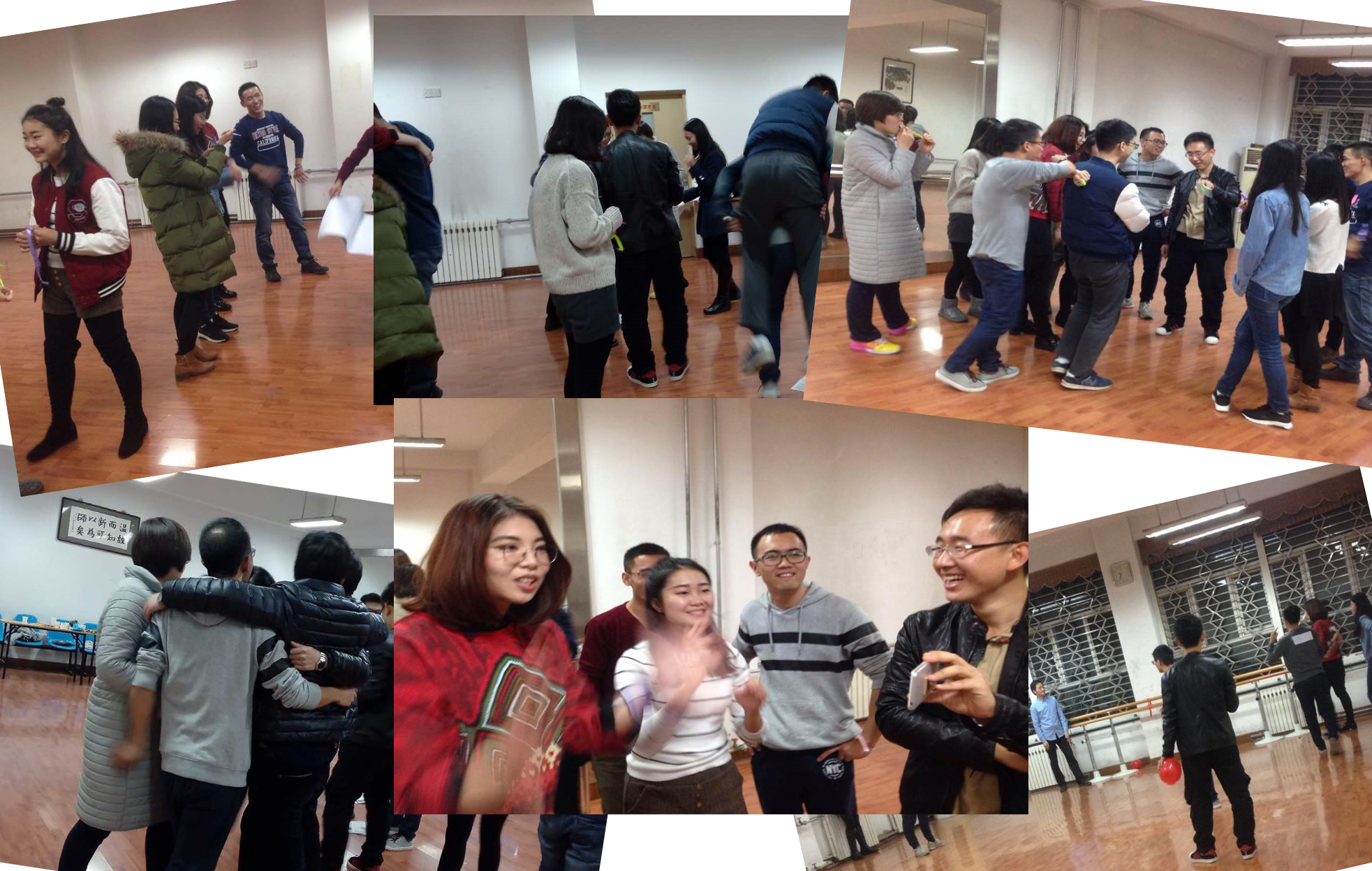 在精彩的互动环节,有通过分组展示logo、队名和口号的创造力展示,有“踩报纸”团队智慧的考验,还有“你画我猜”、“撕名牌”等多个游戏环节的欢乐,每个参与的成员都热血激情,更忘不了对方丰富的表情与滑稽可爱的动作,以及失败的迷茫和成功的兴奋。快乐时光总是显得太快,最后活动在大家的欢歌笑语中进入尾声,两班集体成员合影留念。