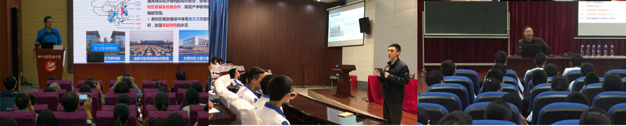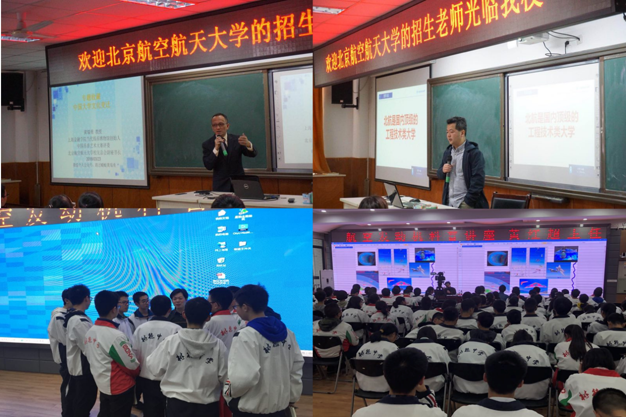 联合北航校友会和北航四川校友会组成校友宣讲团进四川重点中学。3月23日,在成都市铁路中学,北航校友总会副秘书长、上海金融学院融理当代金银币文化研究所所长黄瑞勇作题为《中国大学文化和北航》讲座,结合自身艺术品和钱币的兴趣爱好,以收藏品-纪念章为切入点,讲述北航的故事。北航四川校友会副会长、成都市矽谷产业加速器科技有限公司董事长李辉作题为《北航与成长》讲座,结合自身的经历,详细的介绍了北航的历史、学习与生活、发展与展望。在成都树德中学,中国航发四川燃气涡轮研究院总体性能研究室主任黄红超研究员作《航空发动机知识讲座》,从简单的航空知识出发,由浅入深讲解航空发动机原理;讲座后,黄主任与同学们交流航空发动机相关问题。除此之外,北航四川招生副组长、春满四合院