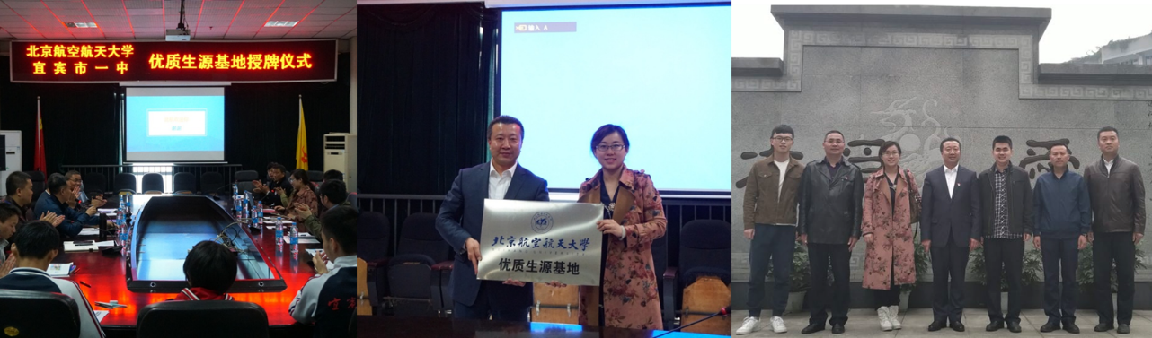3月22日-30日,北航四川招生组赴四川省成都市、绵阳市、宜宾市、雅安市开展学校2018年本科招生前期宣传工作。联合北航校友会和北航四川校友会组成的校友宣讲团、联系北航四川创新研究院及在川教授组成的教授宣讲团在成都市和绵阳市重点中学共举办6场科普和招生宣传讲座;在宜宾一中进行共建优质生源基地挂牌仪式;参加四川省教育考试院组织的高校专项计划暨2018年在川招生宣传工作会、绵阳南山中学110周年校庆系列活动。
