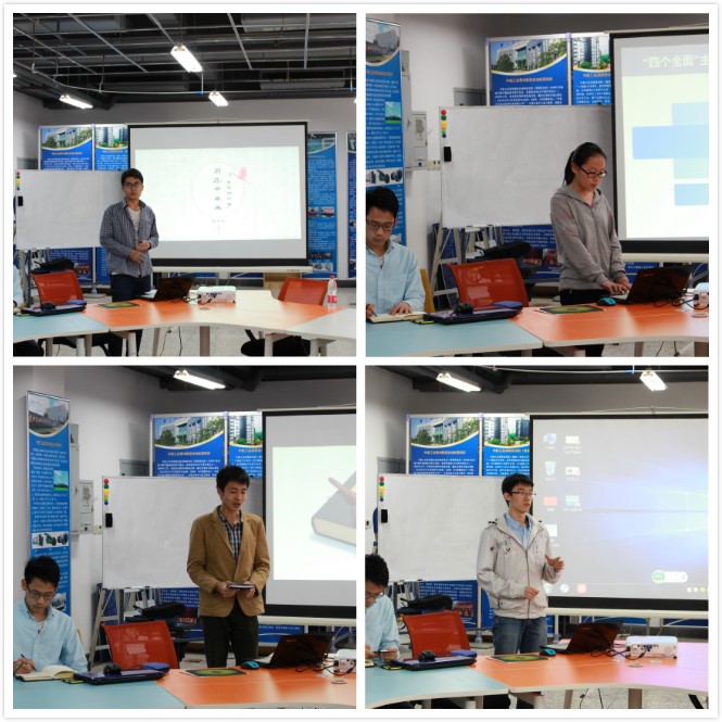 会议第一环节,学生第四党支部的同学们汇报了最近“两学一做”主题学习的学习体会,汇报了《习近平用典》、《四个全面内容》、《立法法》3个主题。郝鑫奕同学介绍了学生第四党支部的日常学习实践活动。