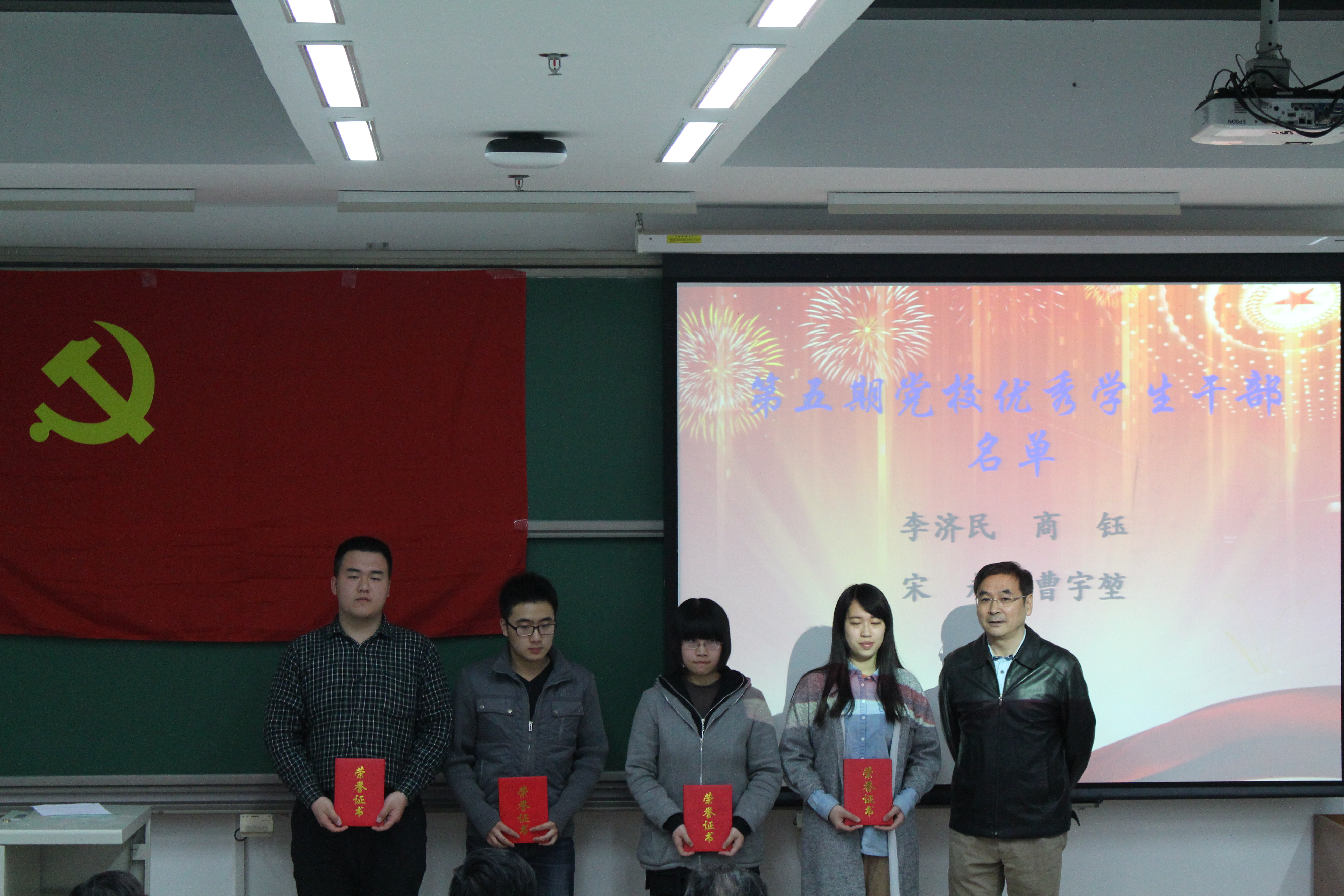 党委副书记李建伟老师,化学与环境学院党委副书记李丹老师,新媒体艺术与设计学院分团委书记董萍萍老师,第五期共建党校优秀学员代表,第五期共建党校优秀学生干部代表以及4、26、27系联合学生党校干部、全体学员。