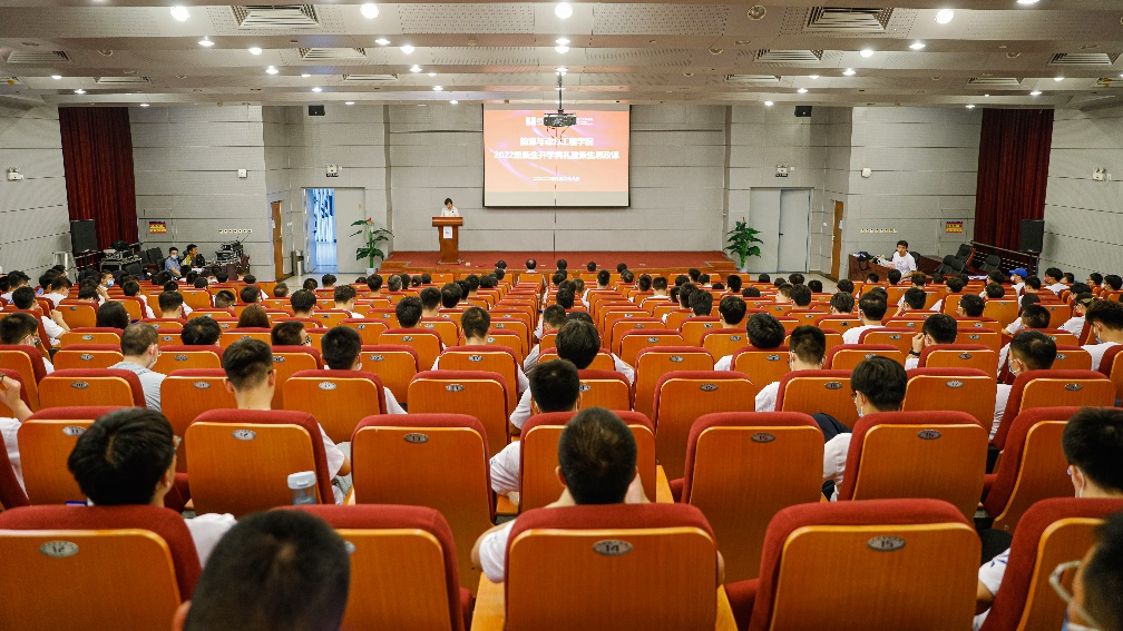 学院党委书记董卓宁为各位新生讲授了新生思政课。他从“为什么要上大学”的问题引入,与各位新生进行了互动。随后,他系统介绍了航空发动机的行业背景、学院“三代人”的奋斗历史以及发展现状。他表示,希望同学们能够严守政治、法律、道德三条底线,心怀“国之大者”,养成勤奋读书、坚持锻炼的良好习惯,培养自己的认知力、创造力、执行力,树立振兴祖国航空发动机事业的远大目标。