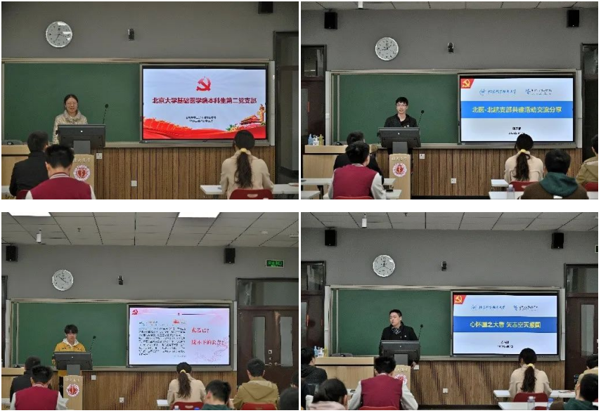 在交流共建会的最后,双方支部党员进行了多方面的交流,提出自己对于各自领域内的疑问并予以解答,气氛轻松愉悦。最后北京大学基础医学院本科生第二党支部书记范晓琪进行总结发言,强调无论医学还是航空航天,不同专业领域的同志都能以自己的方式为国家和社会做贡献,学生党员要刻苦钻研,夯实专业基础,在新征程上交出当代青年的优秀答卷。