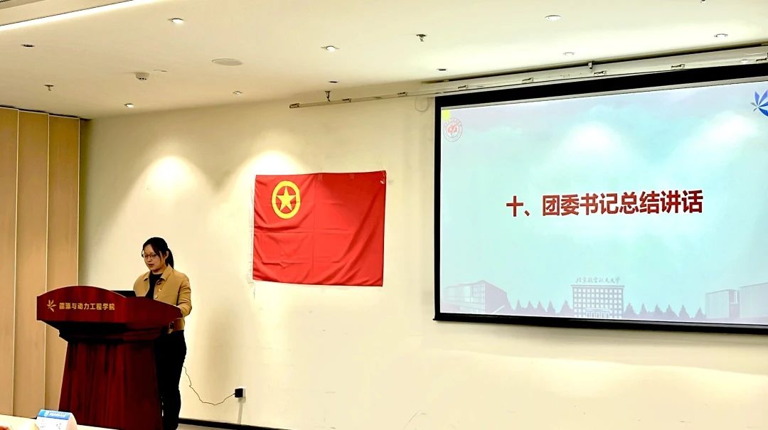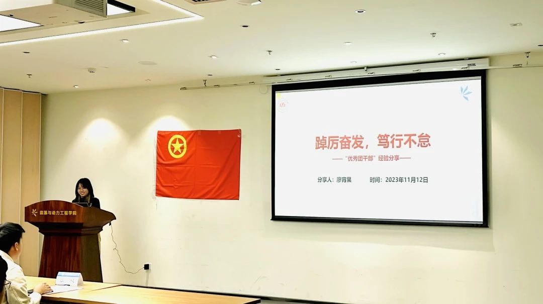 优秀团干部廖宵果以“踔厉奋发,笃行不怠”为主题,分享自己大学以来在学业成绩、学生工作、科技竞赛、社会实践等各方面的成长与收获,号召大家应当夯实数理基础,加强理论学习,并在实践中学真知悟真谛,在祖国的万里长空放飞青春梦想,以昂扬奋进的姿态书写无愧于时代的壮丽篇章。