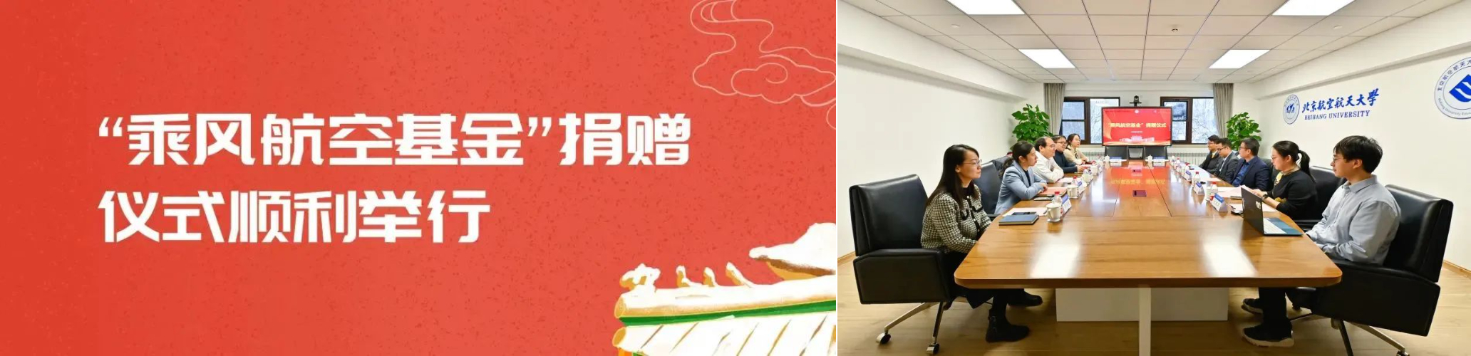 12月12日上午,“乘风航空基金”捐赠仪式在北航校友之家举行。无锡乘风航空工程技术有限公司董事长沈涵、副总经理卫喆,学校计划财务部副部长、教育基金会秘书长颜江芬,春满四合院