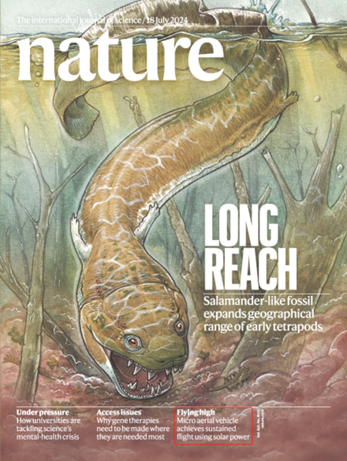 漆明净、闫晓军等在飞行器领域的最新研究论文:“Sunlight-powered sustained flight of an ultra-light micro aerial vehicle”。论文系统阐述了由北航研制的静电飞行器“CoulombFly”(Coulomb意为库仑,是电荷单位)。该飞行器翼展20cm,重4.21g,由一种新型静电电机作为发动机核心,实现了在纯自然光供能下的起飞和持续飞行。该项研究成果由北航科研团队完全自主研发,未来将大幅增加微型飞行器的飞行时长,拓展其应用范围。