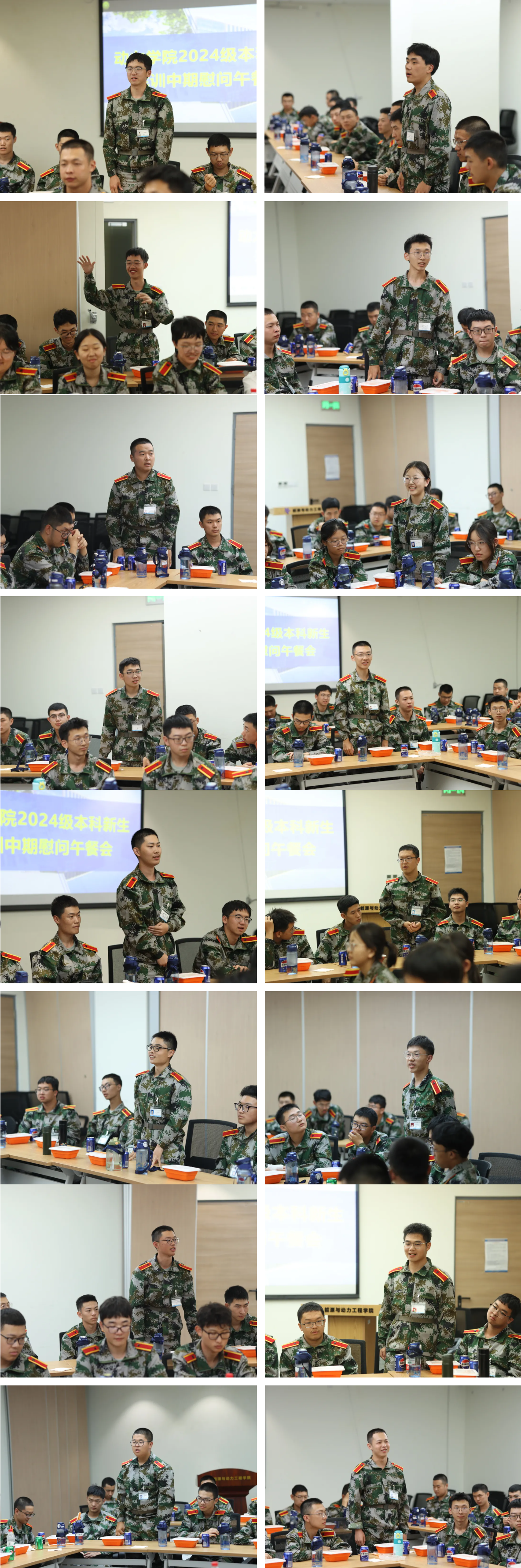 2024级本科新生军训中期慰问午餐会在沙河校区主楼F703举行。学院院长闫晓军,党委书记董卓宁,党委副书记谷萌,2024级本科生班主任李育隆、杨慧,专职辅导员张大伟,2024级新生辅导员范永升、张智,以及学院2024级本科新生参加活动。