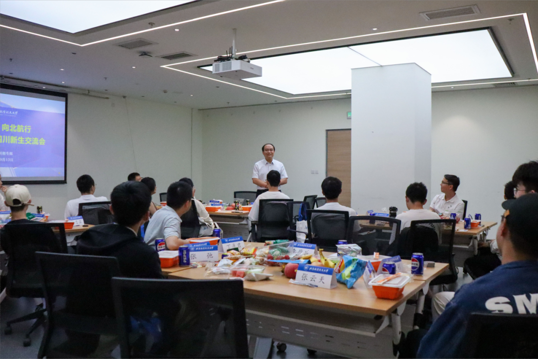 在沙河校区主楼F703举行北航2024年四川新生中秋午餐会,学院党委书记董卓宁,党委副书记谷萌,陈江、张弛、王庆华等“启航导师”,以及来自树德中学、成都七中、绵阳中学等重点高中的2024级四川新生参会。
