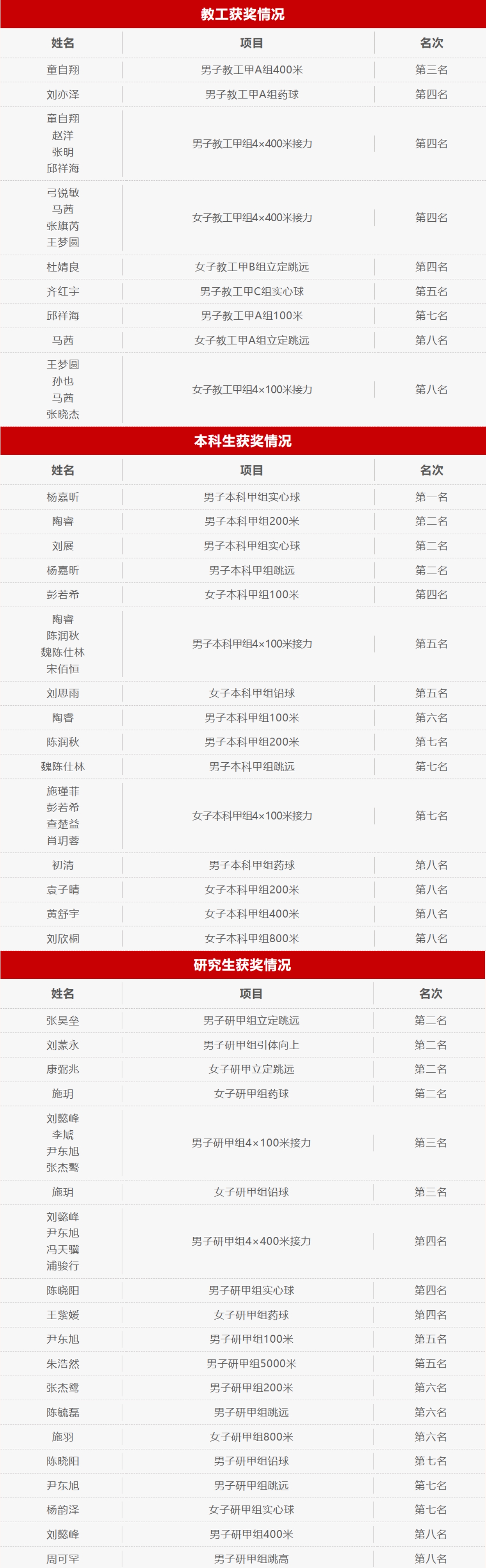 教职工团结协作,在赛场上奋勇向前,收获颇丰。