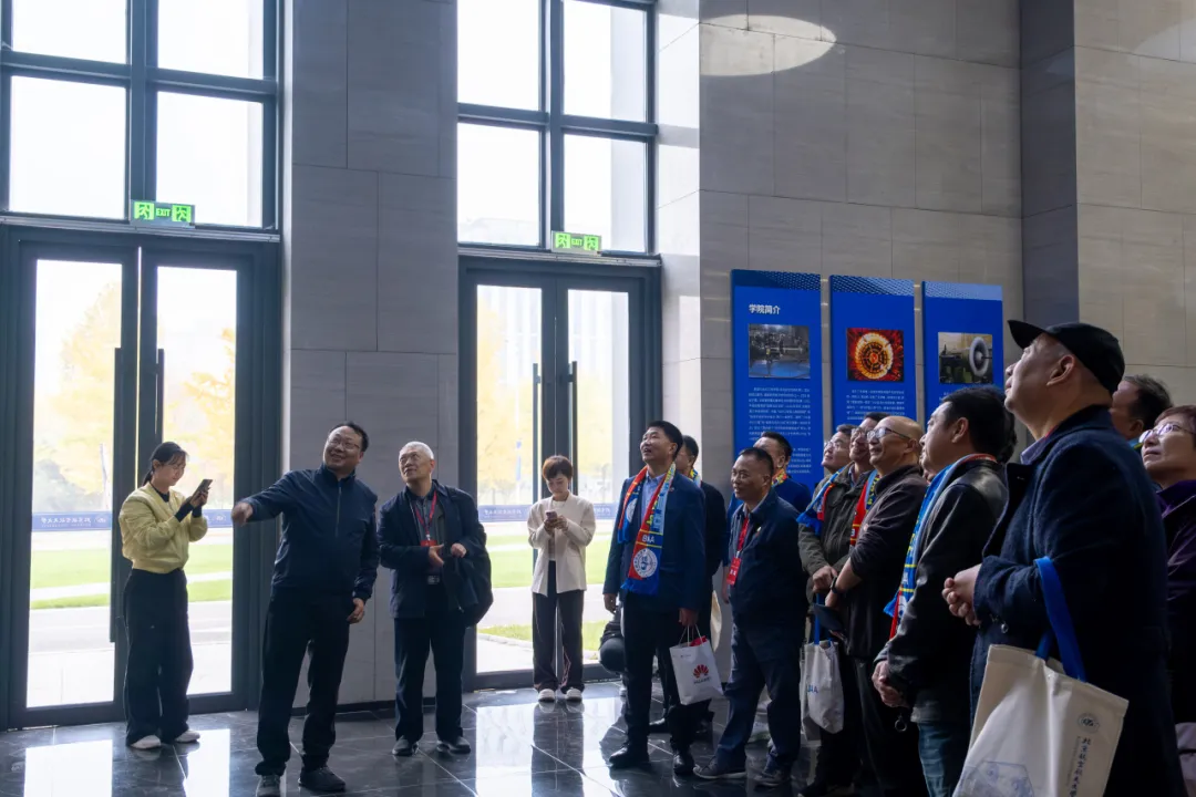 学院领导带领校友参观了学院一层及七层文化展区、部分实验室、“心动”科教中心以及北航-中国航发“两院”创新成果展。