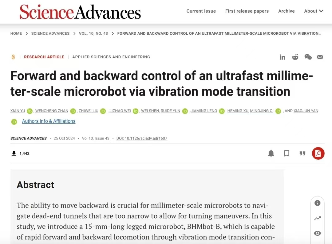 时光青睐有心人。团队的研究成果首次迎来井喷——今年,三项成果先后登上了国际权威学术期刊《自然》子刊、《自然》正刊以及《科学》子刊,这是15年来团队聚焦微型机器人动力研究的最高科研成果,得到学术界、产业界赞赏。