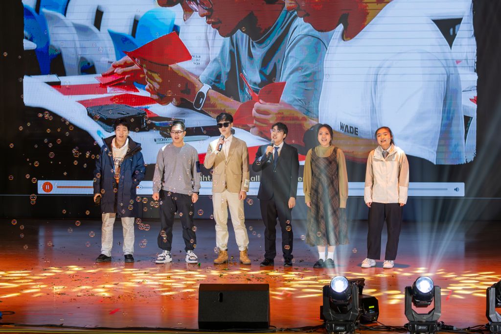 颁奖仪式后,同学们参与到抽奖互动环节,场上充满欢声笑语,幸运的动力学子赢得了精美的礼物。
