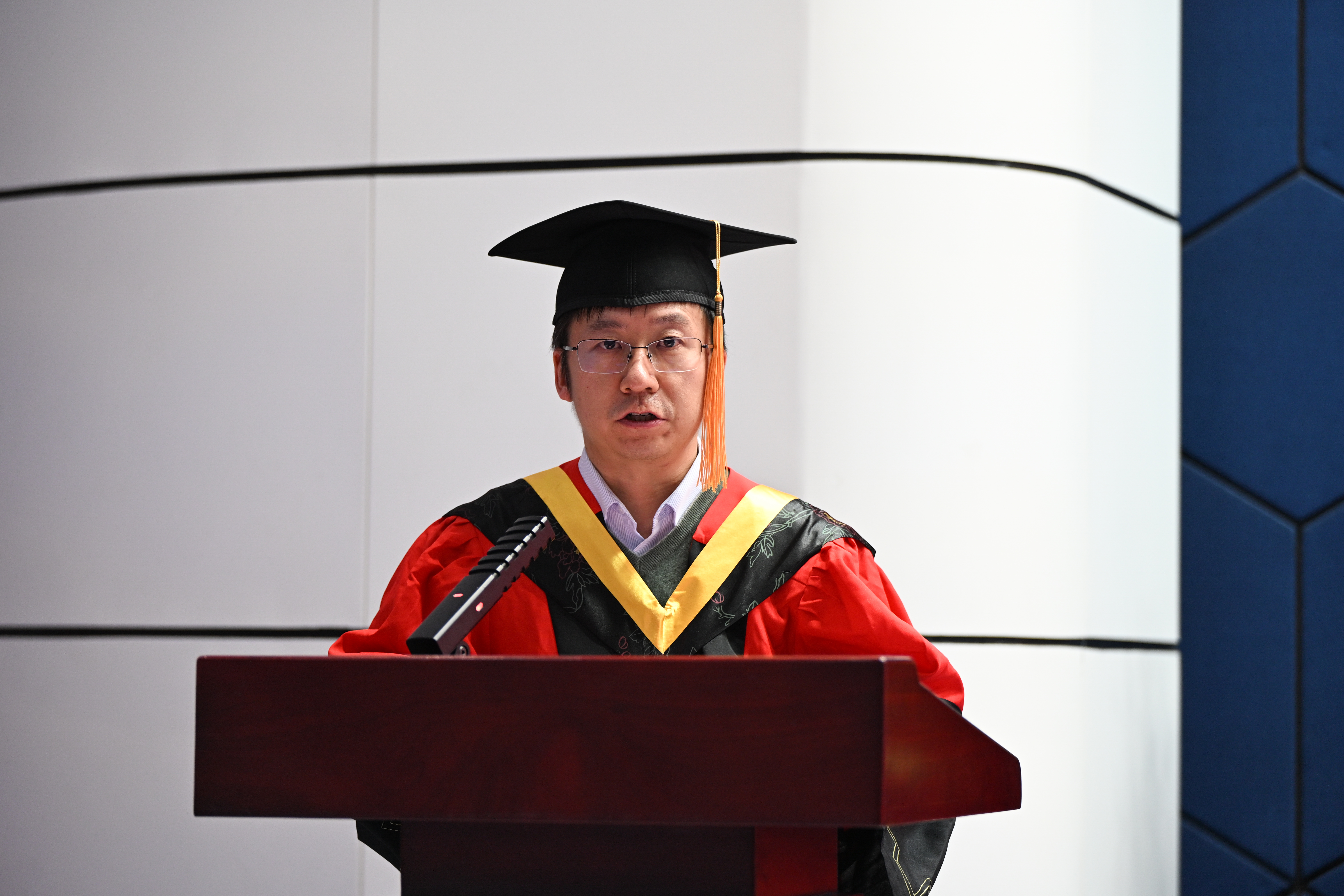 学院院长闫晓军代表学院向顺利完成学业的硕士及博士毕业生表示热烈祝贺,向辛勤付出的研究生导师和教职员工致以衷心的感谢。他回顾了这几年动力学子与国同行所经历的大事,肯定了同学们勇敢追梦、全面发展。闫晓军提出三点希望与2025届研究生毕业生共勉:第一,爱党报国,从校史院史中汲取奋进力量。人生的理想各有不同,但胸怀“国之大者”,服务国之所需,无疑是最为高远的志向。第二,终身学习,从勇于实践中锤炼过硬本领。“学如逆水行舟,不进则退”,把勤奋学习作为价值追求和人生态度。第三,团结拼搏,在凝聚力量中开创美好未来。“独行者速,众行者远”,希望大家传承好北航人团结拼搏的光荣传统,争做团结拼搏的奋斗者。