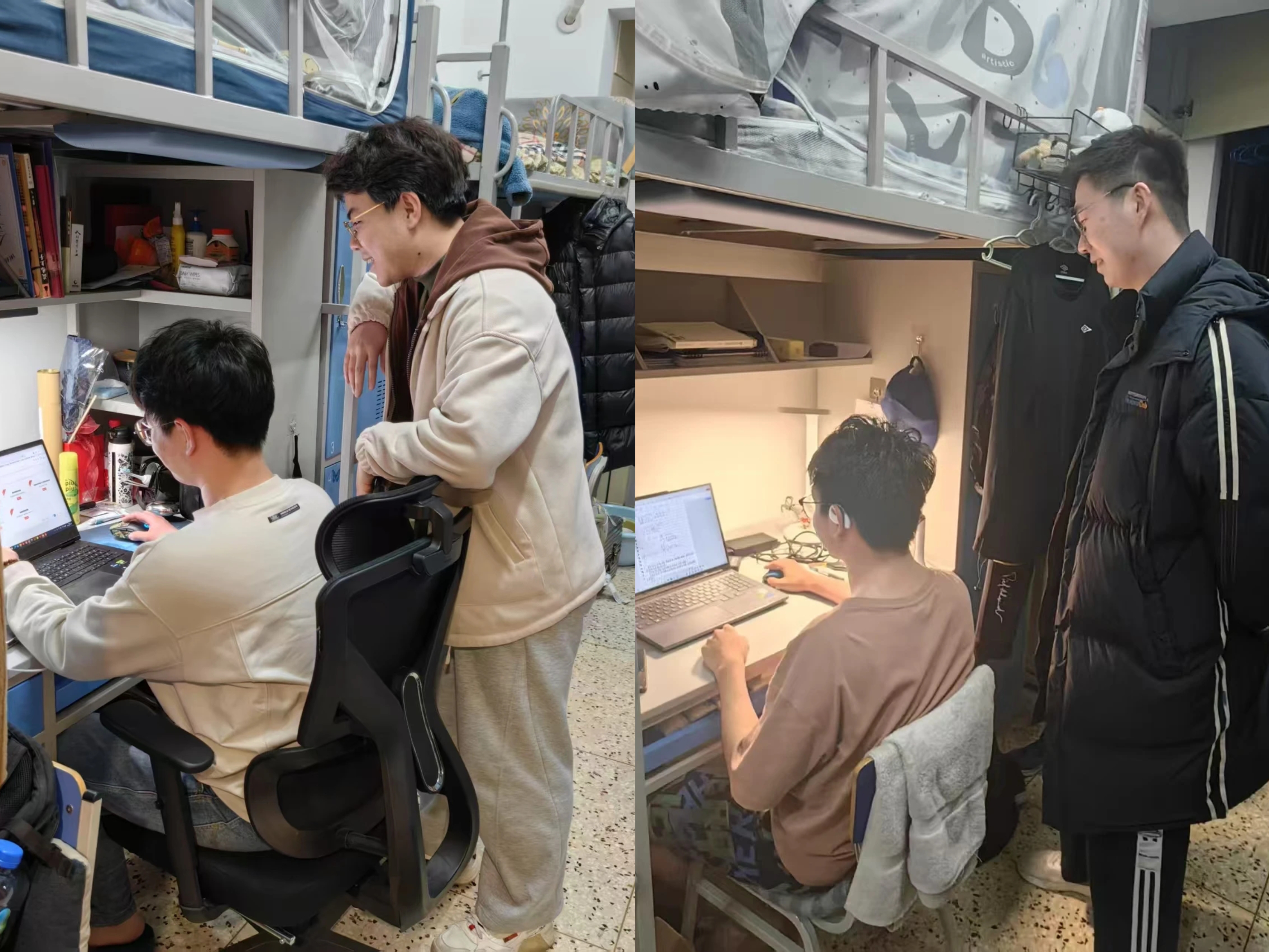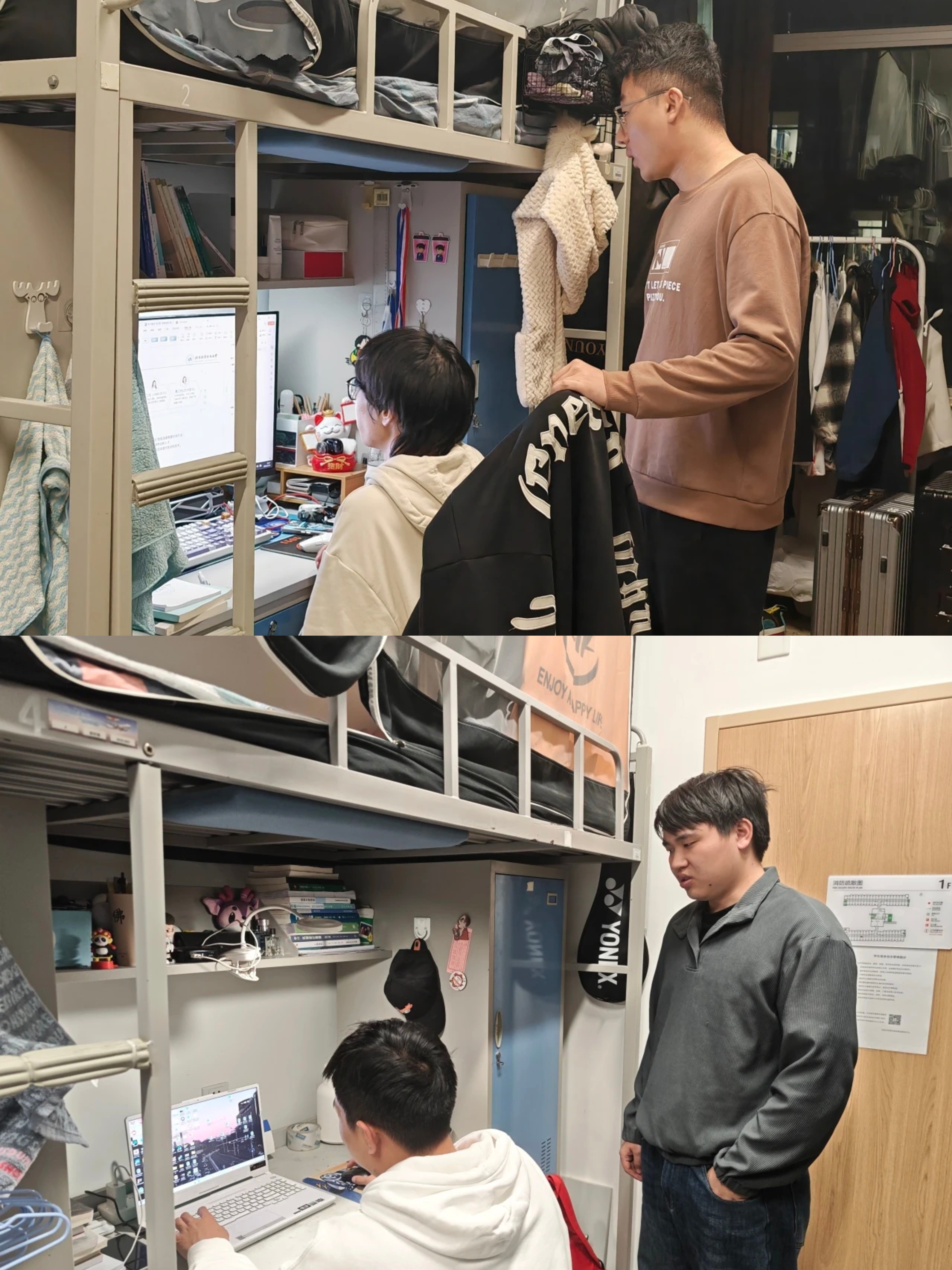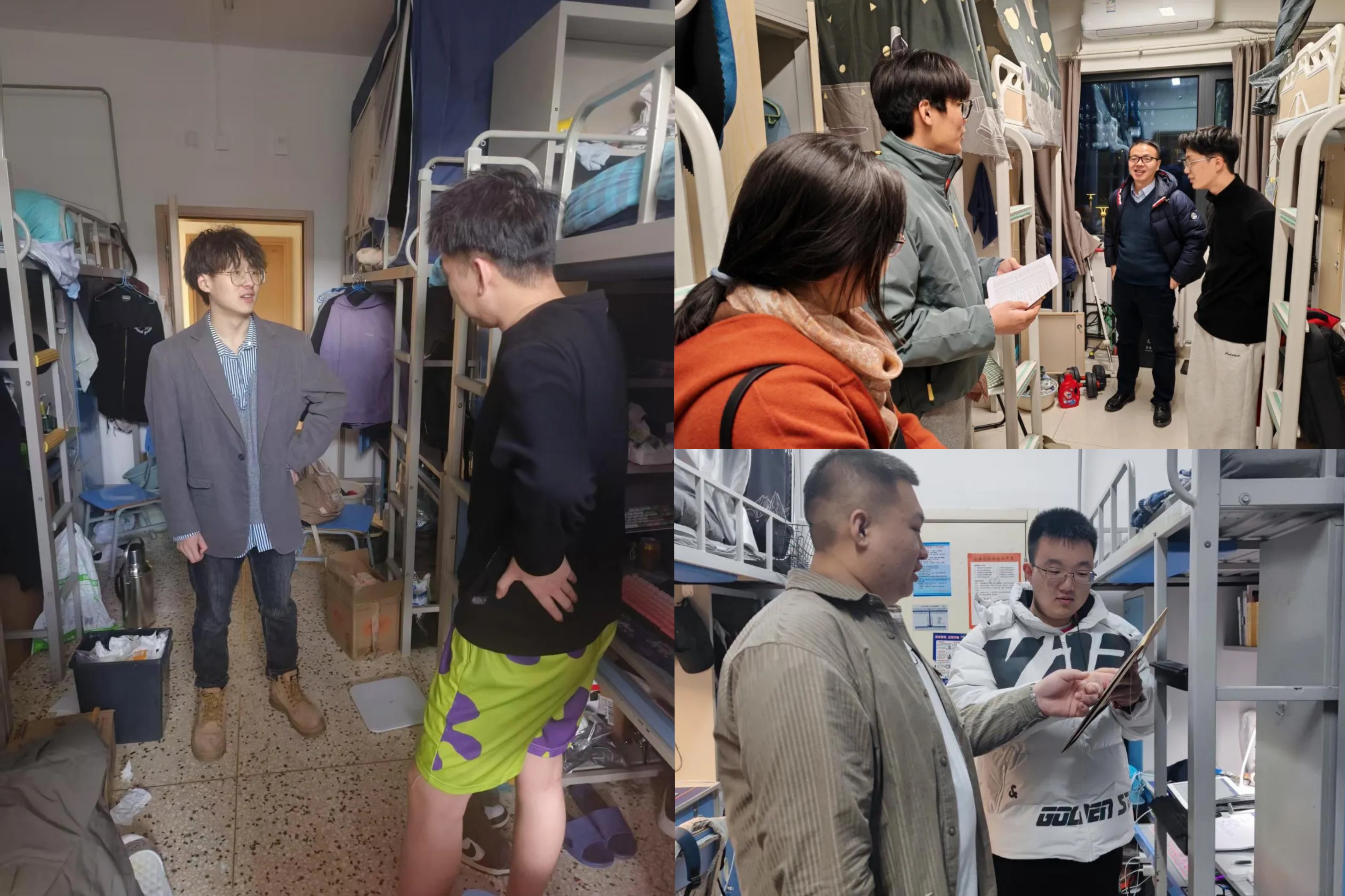学院老师和辅导员走访学生宿舍,了解同学们的假期生活、学习进度、学期规划等。敲开房门,既有学生专注科研的身影,也有备考复习的专注,同学们已经进入状态,做好新学期的准备。