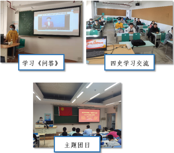 支部推出特色活动“翻转课堂”,鼓励同学分享交流,做到美育德育齐头并进;在建党百年之际,支部坚持教育引领青年,学习《习近平新时代中国特色社会主义思想学习问答》,通过研讨会、读书会的形式重点学习四史材料,引导团员青年了解党的光辉历史、传承党的红色基因;在建团百年之际,支部举办“传承五四精神 争做时代先锋”主题团日,引导团支部成员牢记历史,不忘初心,砥砺前行。