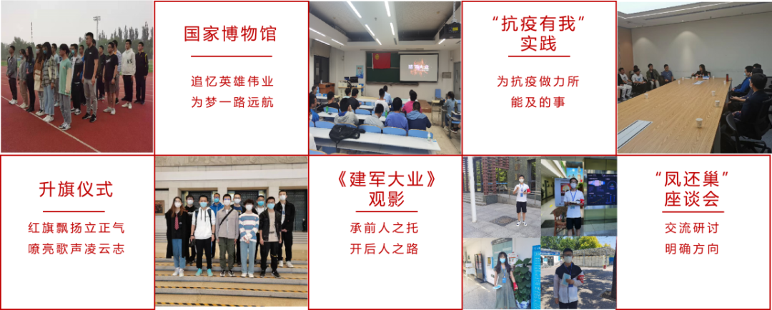 本学年支部积极开展各类实践活动。支部举行升旗仪式,强化爱国爱党信念;组织参观中国国家博物馆,追忆英雄伟业;组织《建军大业》观影,决心承前人之托,开后人之路;疫情封校期间,团支部成员积极参与校园疫情防控提醒志愿服务,为平安校园建设贡献力量。200441团支部坚持在实践活动中融入自身特色,引领同学们做信念坚定、开拓创新的北航人。
