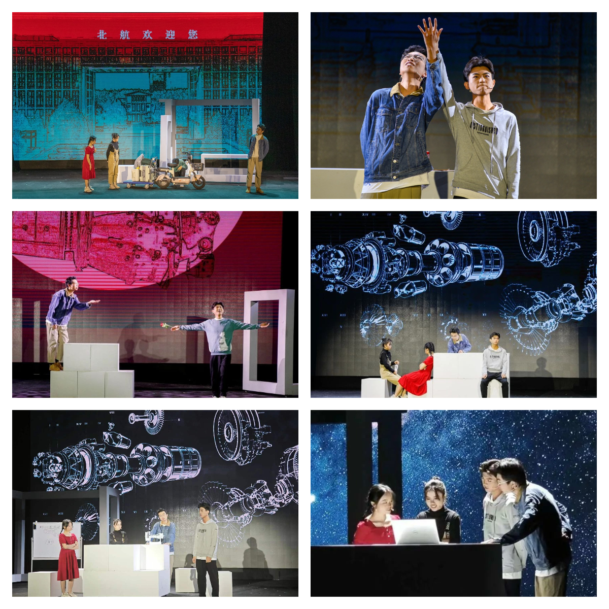 四名学生从开学迎新相识相知、到团结合作解决难题,在AIAA发动机设计大赛斩获冠军的故事。该部分演出幽默风趣、贴合现实,观众笑语不断、掌声如鸣。