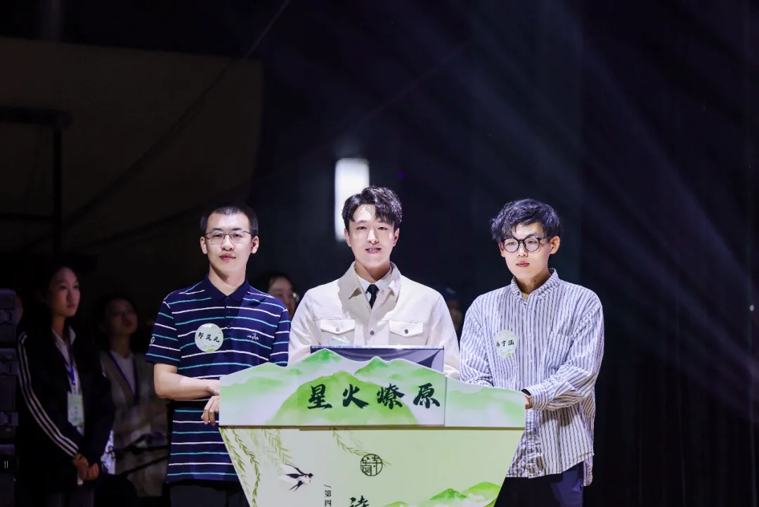 第三轮也是本届诗词大会的巅峰对决——飞花令,以“星”为关键字展开角逐。两队选手才思敏捷,你来我往,佳句频出,文采飞扬,将现场气氛一次次推向高潮。“天若不爱酒,酒星不在天,地若不爱酒,地应无酒泉”、“昨夜星辰昨夜风,画楼西畔桂堂东”、“火树银花合,星桥铁锁开”、“夜长天色总难明,寂寞披衣起坐数寒星”…比赛高潮迭起,动人心弦。最终,我院2023级三名硕士研究生王轶涵(队长)、郎昊元、高宇涵组成的星火燎原队斩获本届诗词大会的一等奖。