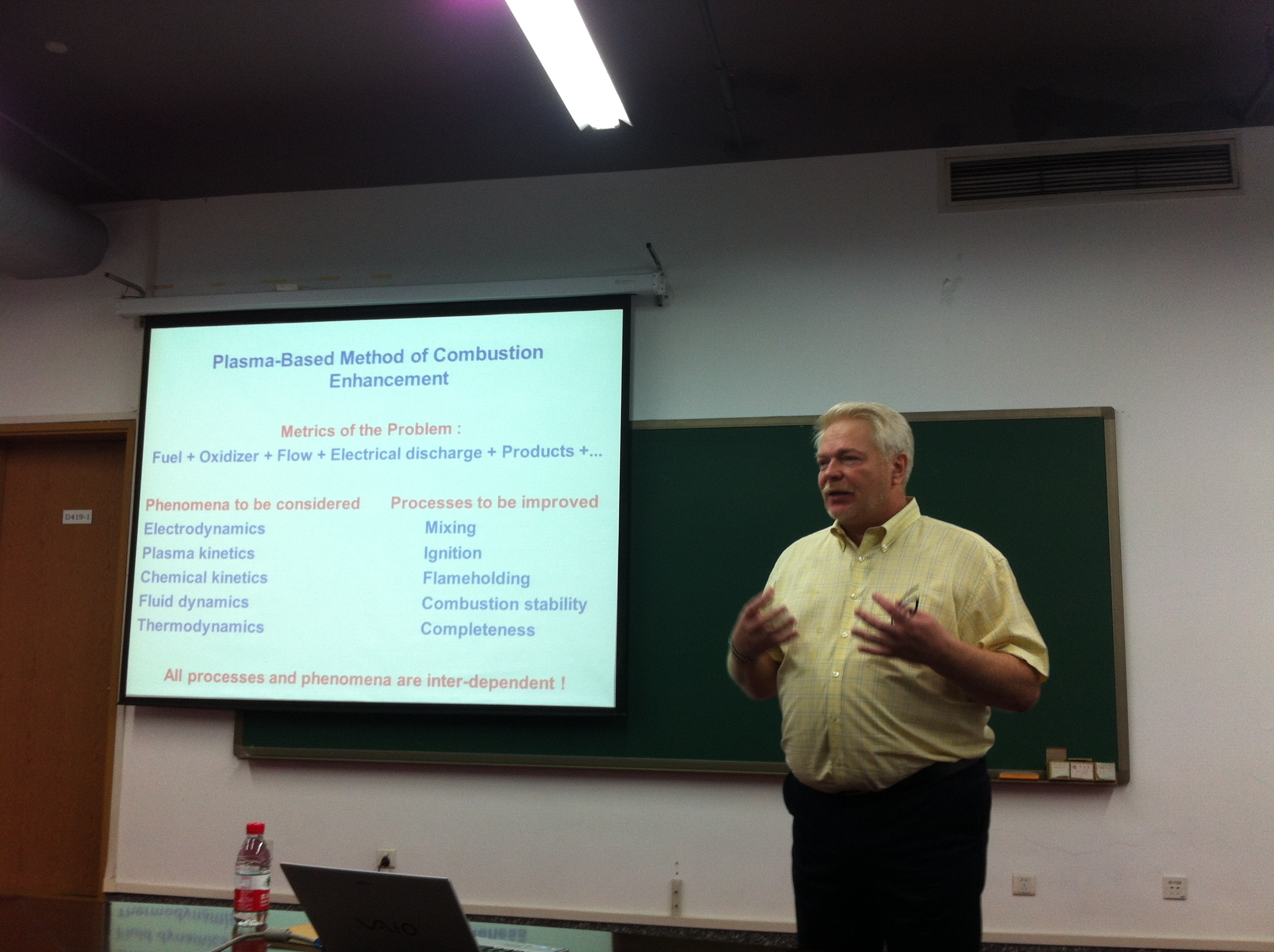 2015年8月31日上午,国际等离子体研究领域知名专家Sergey Leonov教授在新主楼D419会议室做了关于等离子体强化掺混及等离子体强化燃烧方面的专题学术报告。春满四合院