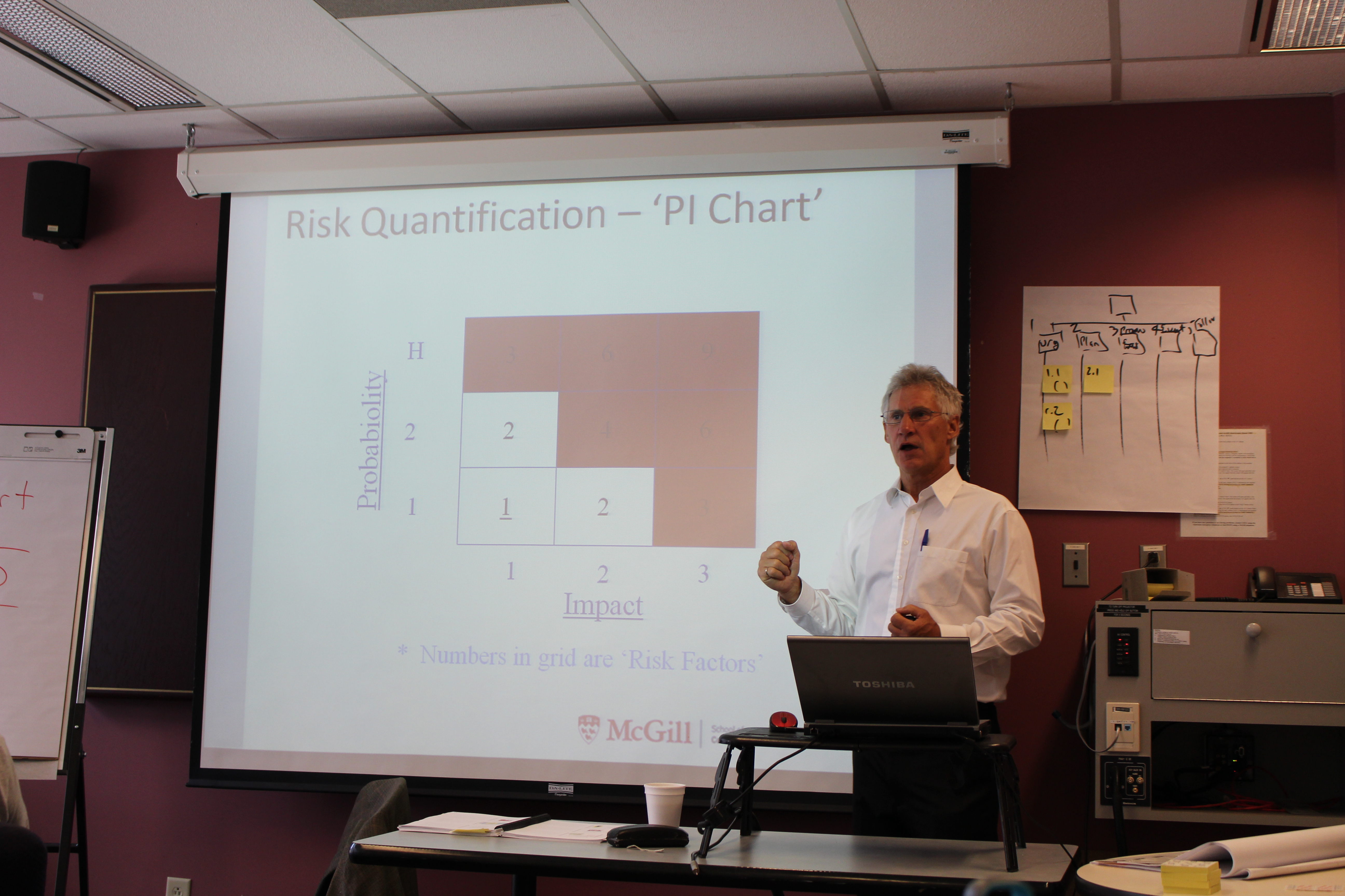 当天全天课程均为项目管理,课程主要对之前项目进展的知识进行了梳理,将花费到统筹方面知识的更新以及细化。Bartlett教授在上午为大家讲解了项目管理的风险估算,这使大家对如何运行一个项目有了更多的体会,大家也纷纷表示在今后设计一个项目的时候,会有更多更全面的考虑。