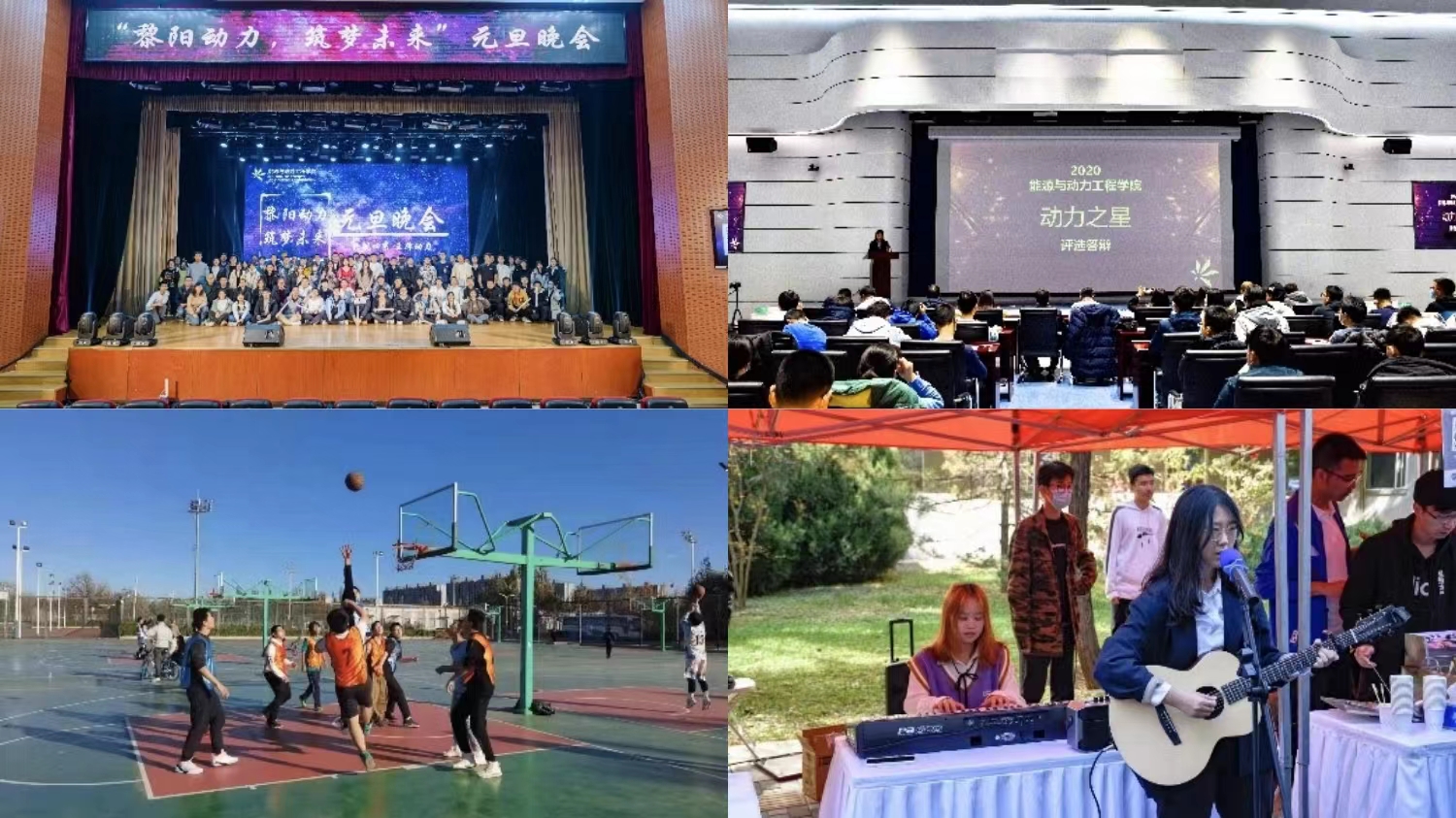 迎新晚会、篮球赛、元旦联欢会、校庆嘉年华、动力之星颁奖晚会、“冯如杯”节能减排专项竞赛、能动大讲堂等。